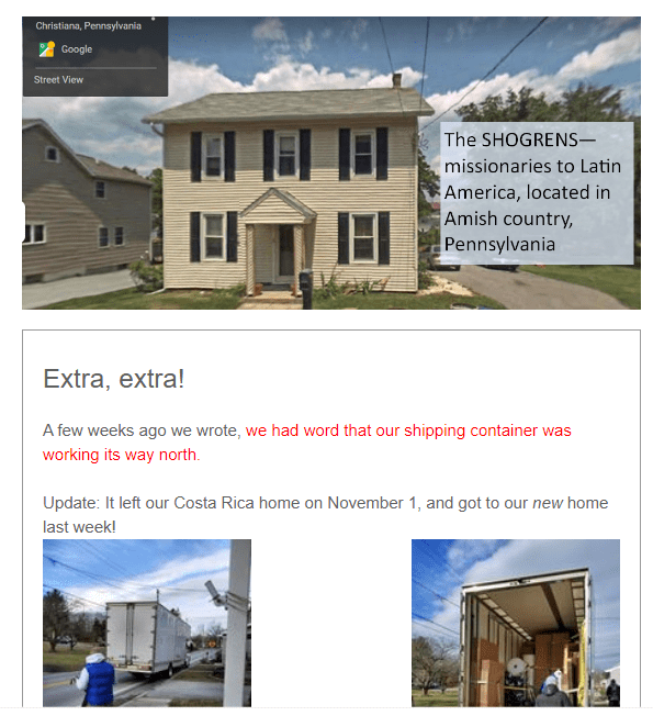 We were unable to get vaccinated in Costa Rica, so we decided to pop up to the States for a couple of months; and as soon as we flew up, Costa Rica when back on strict shutdown. So, this will be our summer to meet some of our churches and individual reporters, in order to bring them up to date on our work. Our calendar is filling up! Contact Karen at keshogren@gmail.com or call her at 717-413-1764. Meanwhile, we are doing our regular work of teaching and writing in beautiful Lancaster County. We will see many of you over the next weeks.