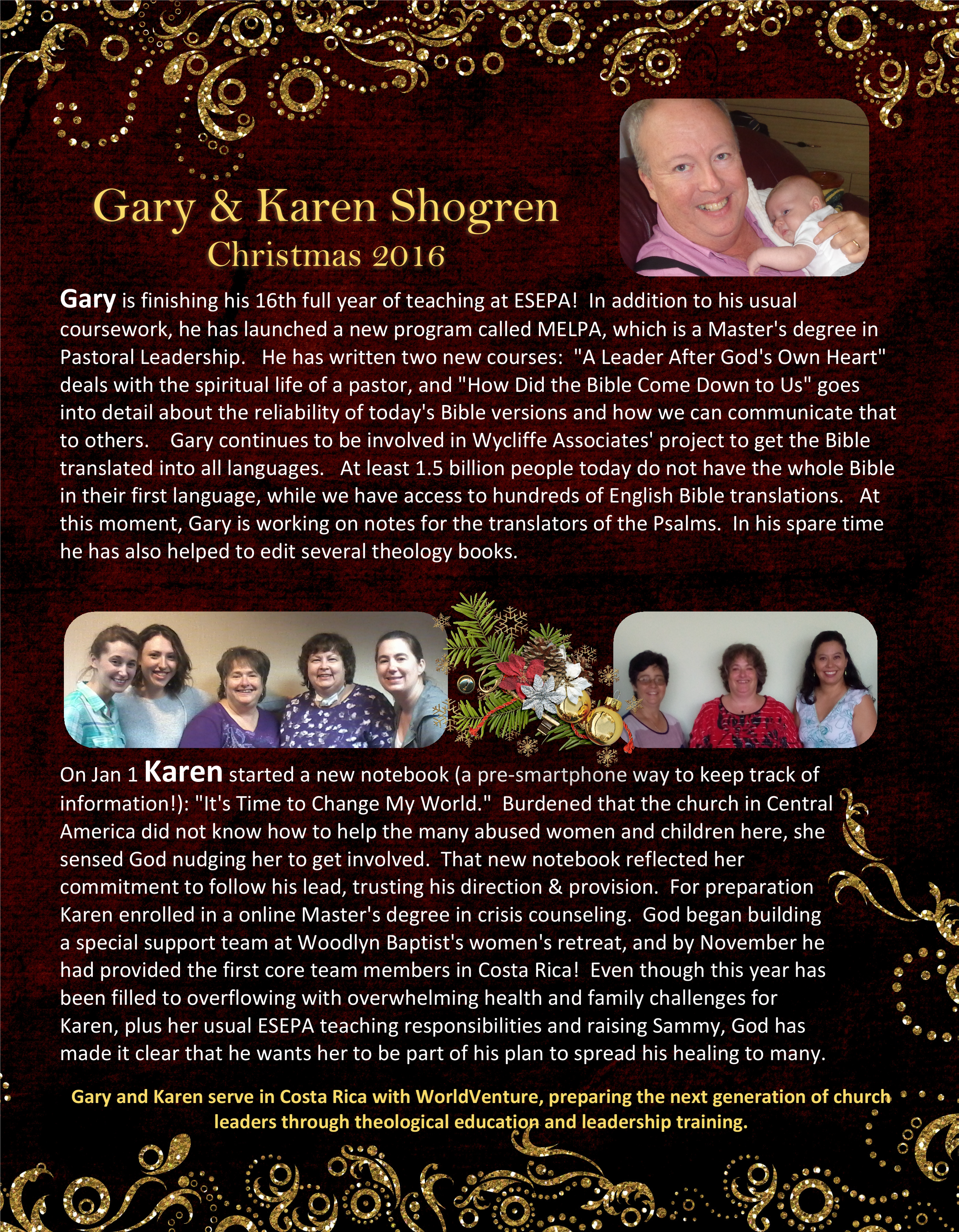Financial needs for 2017 Many blessings to you! Gary and Karen Shogren |